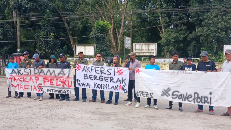 SERANGRAYA.ID | Kabupaten Bogor – Anggota wartawan yang tergabung di Asosiasi Keluarga Pers Indonesia (AKPERSI) mengadakan Aksi Damai di depan Kepolisian Sektor (Polsek) Rumpin, Kabupaten Bogor, Jawa Barat, Meminta agar Kapolsek segera menangkap pelaku pengancaman pembunuhan terhadap kami para wartawan, Senin (14/07/25).