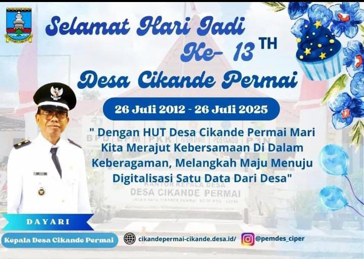 Serang – Pemerintah Desa Cikande Permai, Kabupaten Serang Banten, saat ini sedang merayakan Hari ulang tahun Desa Ke-13 tahun, Dayari Pucuk Pimpinan Desa Cikande Permai mengajak dan memotivasi seluruh elemen masyarakat untuk ikut andil memajukan Desa Cikande Permai lebih maju dan bahagia, Minggu, (27/07/2025)