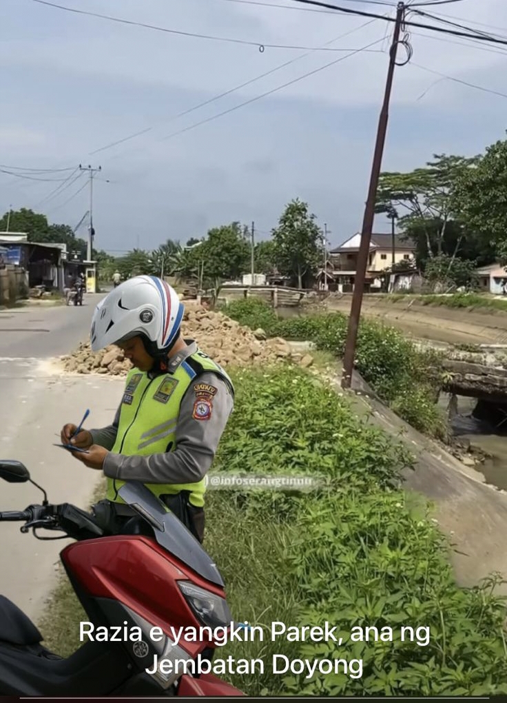 Ketua Forum Jurnalis Serang Raya (FJSR) Nusi ketika di minta tanggapan terkait beredarnya poto-poto polisi yang sedang melakukan Razia kendaraan bermotor di wilayah kecamatan kibin yang di tulis dalam poto tersebut di wilayah Cijeruk tepatnya di depan PDAM dan desa Nagara, pas jembatan doyong/roboh.