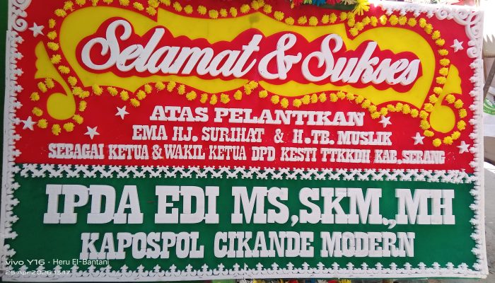 Serang – Kapospol Cikande Modern, IPDA H. EDI MS., SKM., MH memberikan ucapan selamat atas pelantikan ketua DPD Kesti TTKKDH Kabupaten, Serang, yang dipimpin oleh Hj. Surihat dan H. TB. Muslih sebagai Wakil, pada Sabtu, (25/04/2026)