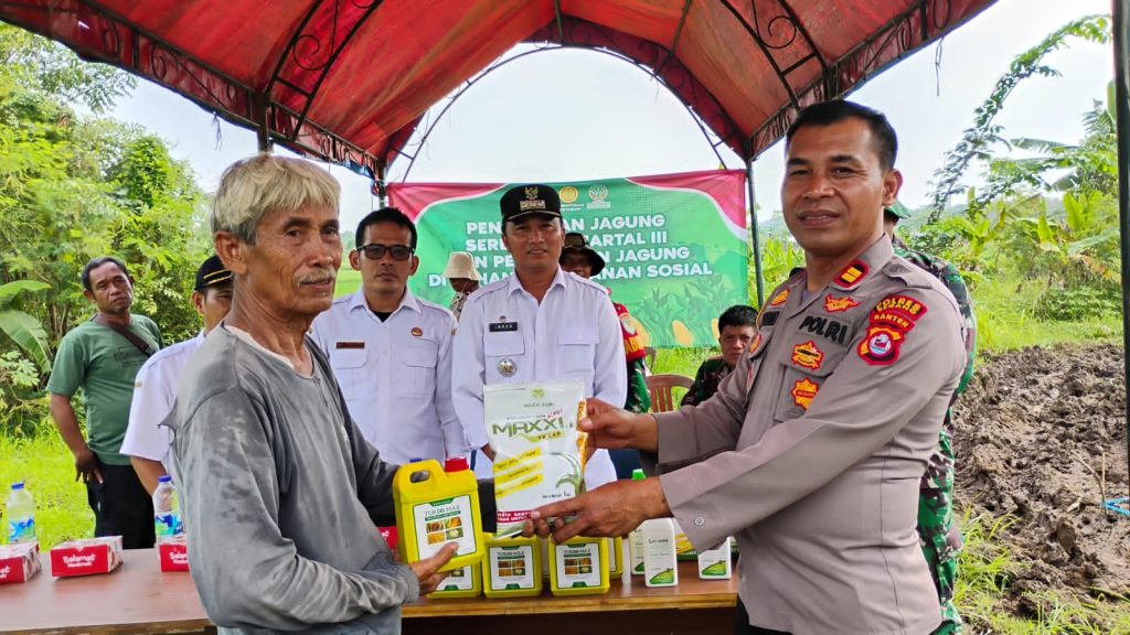 Serang — Dalam rangka mendukung program ketahanan pangan nasional, Kapolsek Kopo, Iptu Aripin Simbolon SH., bersama Camat Kopo Imron S. Ip,. M. Si,. Dan Kepala Desa Gabus Endang, melakukan penanaman jagung Serentak se Indonesia dan Penanaman jagung hibrida Kuartal III di lahan Perhutanan Sosial, Rabu, (09/07/2025)