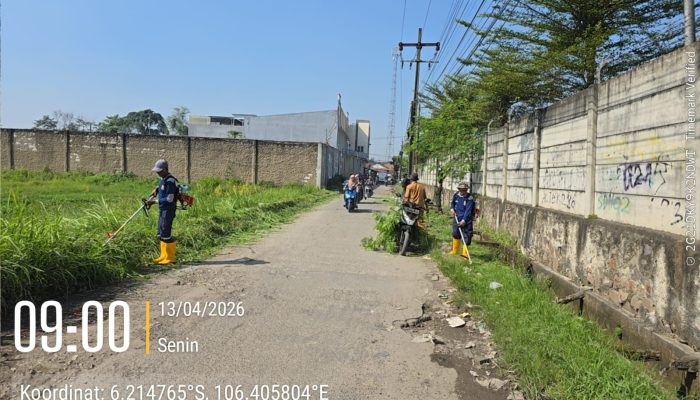 Tangerang – Ketua Rw 001 dampingi Sekertaris Desa (Sekdes) beserta jajaran dan Tim kebersihan Desa Sumur Bandung, rutin lakukan pembersihan sampah mingguan jaga kebersihan lingkungan Desa Sumur Bandung, Kecamatan Jayanti, Kabupaten Tangerang, Senin, (13/04/2026).