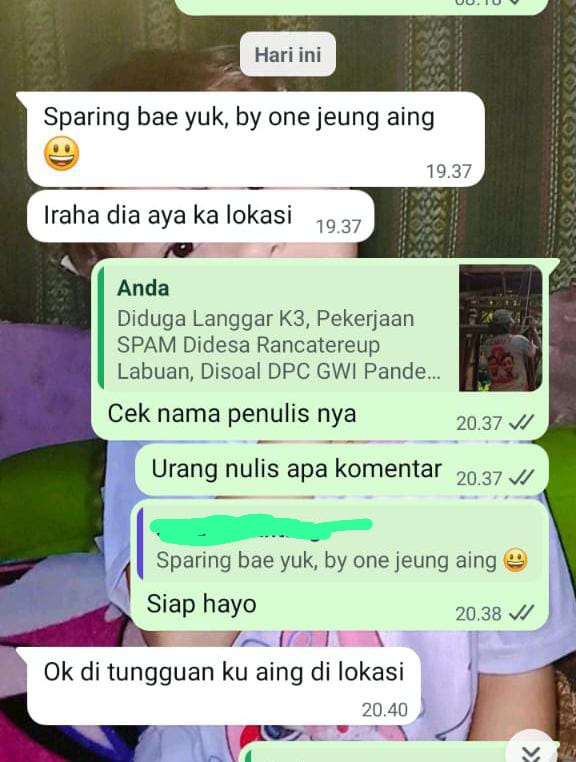 Pemberitaan tersebut menyoroti dugaan abaikan APD (Alat Pelindung Diri) oleh pekerja di lokasi proyek. Namun, bukannya memperbaiki kesalahan, oknum pelaksana malah menantang berkelahi Ketua GWI melalui pesan WhatsApp.