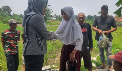 Pelajar SD Berjalan Tanpa Sepatu , DPR RI Sarifah dan DPRD Joko Santoso Berikan Bantuan Beli Sepatu Baru Saat Tinjau Pebaikan Infrastruktur.