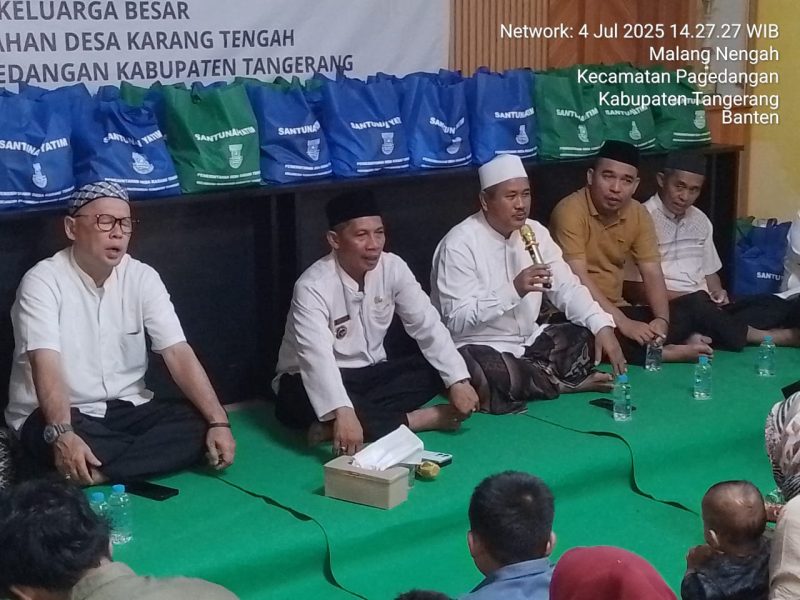SERANGRAYA.ID | TANGERANG, — Dalam rangka menyambut Tahun Baru Islam 1 Muharram 1447 H, Pemerintah Desa Karang Tengah, Kecamatan Pagedangan, menggelar acara santunan bagi 70 anak yatim, Kamis (4/7/2025). Kegiatan yang berlangsung khidmat dan penuh haru ini dihadiri oleh tokoh agama, tokoh masyarakat, perwakilan dunia usaha, unsur keamanan, serta aparatur pemerintah desa.