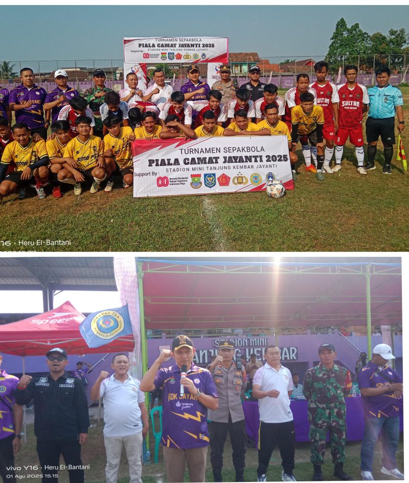 Dalam sambutannya, Camat Jayanti H. Yandri Permana S. Stp, mengatakan selain menyambut dan memeriahkan HUT Ri ke-80, turnamen sepak bola Piala Camat Jayanti Cup tersebut perdana di gelar.