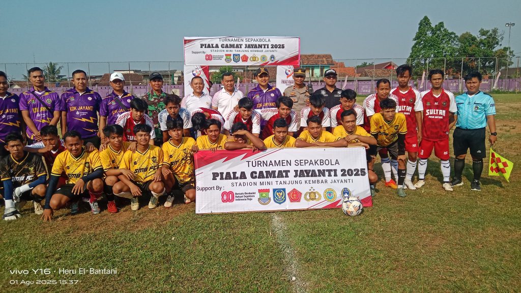 Kab. Tangerang, — Pemerintah kecamatan Jayanti bersama Komite Olahraga Kecamatan (Kok) Kecamatan Jayanti melaksanakan turnamen sepak bola Piala Camat Jayanti Cup Dalam rangka memeriahkan HUT RI Ke-80 yang bertempat di Stadion Tanjung Kembar Jayanti, Kecamatan Jayanti, Kabupaten Tangerang Banten, Jum’at, (01/08/2025).