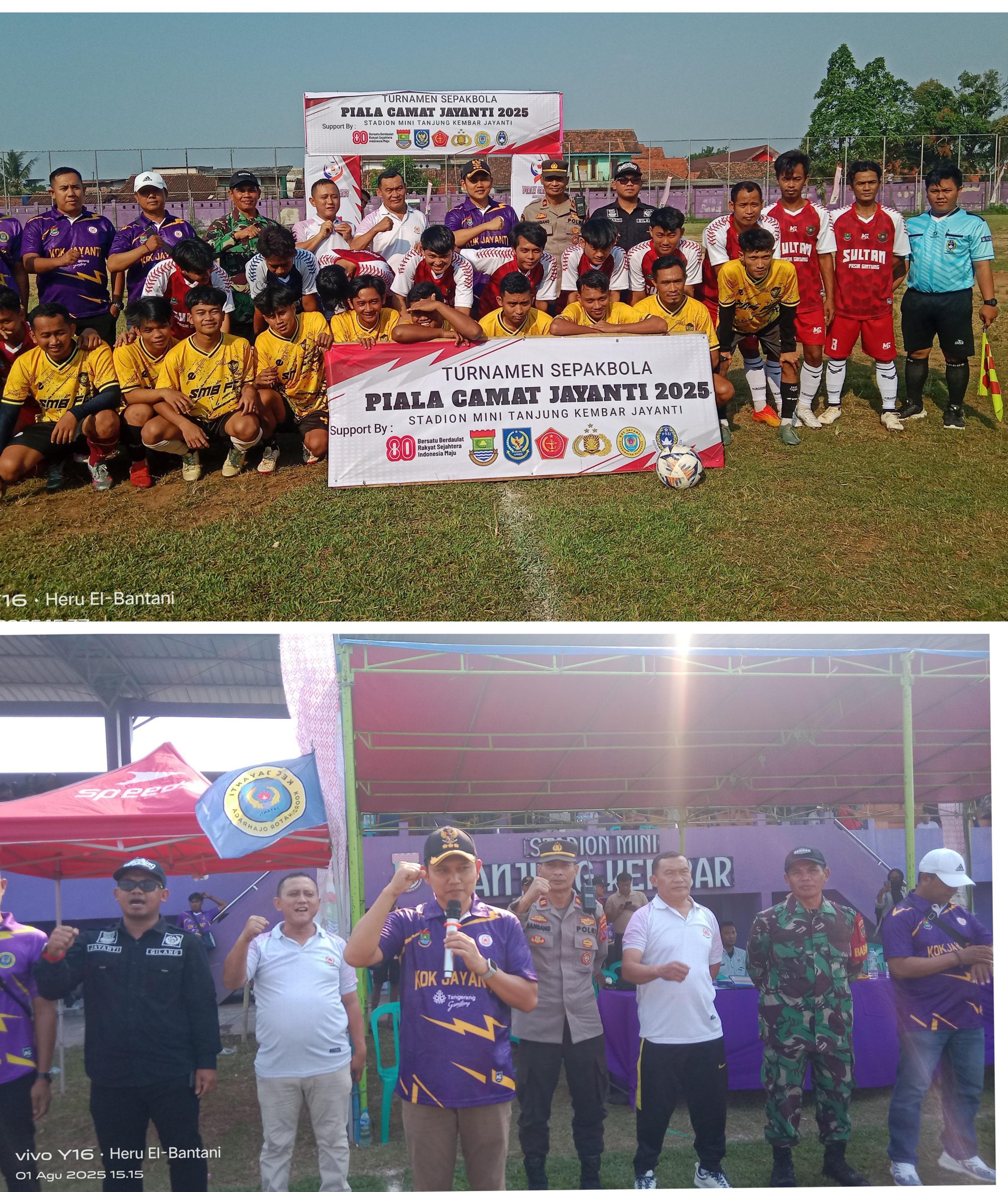 Kab. Tangerang, — Pemerintah kecamatan Jayanti bersama Komite Olahraga Kecamatan (Kok) Kecamatan Jayanti melaksanakan turnamen sepak bola Piala Camat Jayanti Cup Dalam rangka memeriahkan HUT RI Ke-80 yang bertempat di Stadion Tanjung Kembar Jayanti, Kecamatan Jayanti, Kabupaten Tangerang Banten, Jum’at, (01/08/2025).