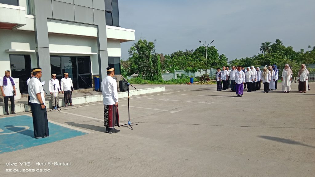Tangerang – Momentum Hari Santri Nasional (HSN) Tingkat Kecamatan Jayanti Kabupaten Tangerang Tahun 2025 diperingati dengan Upacara, di Halaman Kantor Kecamatan Jayanti, Kabupaten Tangerang Banten, Rabu, (22/10/2025). Plh Camat Jayanti H. M. Ridwan Firdaus S. Stp, S. Ip,. M. Si,. bertindak sebagai Pembina apel.