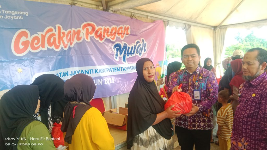 TANGERANG – Pemerintah Kabupaten (Pemkab) Tangerang melalui Kecamatan Jayanti terus berupaya menjaga stabilitas harga pangan di tengah kondisi ekonomi yang belum sepenuhnya pulih. Salah satunya dengan melaksanakan Gerakan Pangan Murah yang digelar di Halaman Kantor Kecamatan Jayanti, Kabupaten Tangerang, Banten, pada Kamis, (09/10/2025).