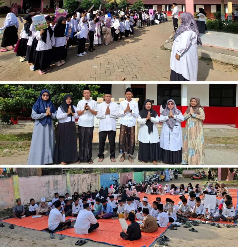 Kegiatan dimulai dengan pembacaan doa dan shalawat bersama di halaman sekolah, dipimpin oleh BPK.Nurheli.S.pd.dan Mohamad Hamami S.pd Seluruh peserta didik mengikuti dengan penuh antusias dan khusyuk. Setelah itu, para siswa bersama guru melakukan pawai sambil membawa bendera dan poster bertemakan “Santri Hebat, Indonesia Kuat”.