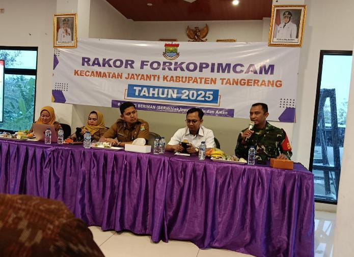 Tangerang – Komandan Koramil (Danramil) 13/Cisoka Kapten Inf Triyadi diwakili Sersan Kepala (Serka) Murtopo Sugiarto menghadiri rapat koordinasi Forum Komunikasi Pimpinan Kecamatan (Forkopimcam) bertempat di Aula Kantor Kecamatan Jayanti, Kabupaten Tangerang Banten, Selasa, (30/09/2025)