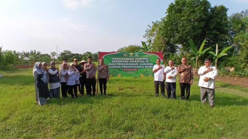 SERANGRAYA.ID | Serkot – Guna mendukung program ketahanan pangan nasional Polsek Serang Polresta Serang Kota (Serkot) bersama Forkopimcam, Tokoh Masyarakat dan Kelompok Tani (Poktan) yang ada di Kelurahan Serang Kecamatan Serang Wilayah Hukum Polsek Serang melaksanakan penanaman jagung serentak kuartal ke III di lokasi penanaman yang ada di Lingkungan Perumnas Ciracas, Kelurahan Serang dengan luas lahan 1,4 hektar pada Rabu, (09/07/2025).
